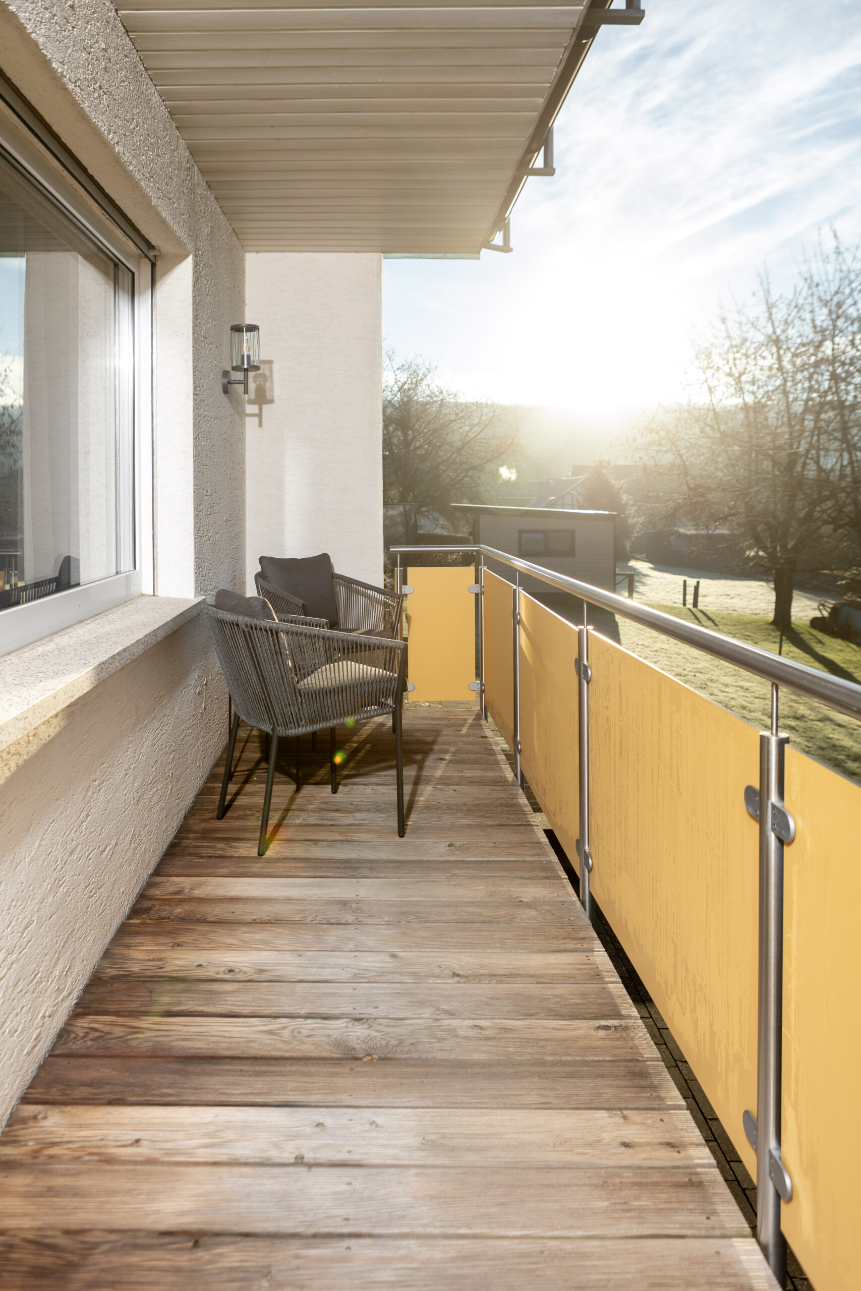 - Balkon oder Terrasse: Mit Sitzmöbeln, ideal für ein Frühstück in der Sonne.